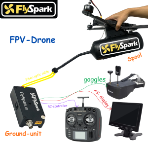 The FlySpark Opticallink GBD Ground Station is the ground-end fiber controller for drone optical tether / fiber-link systems—built for bi-directional telemetry + real-time video transmission over 1 km to 30 km using FlySpark fiber cable trays.