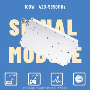 • FlySpark 100–900MHz 100W GaN RF jammer module – shielded aluminum, SMA port
